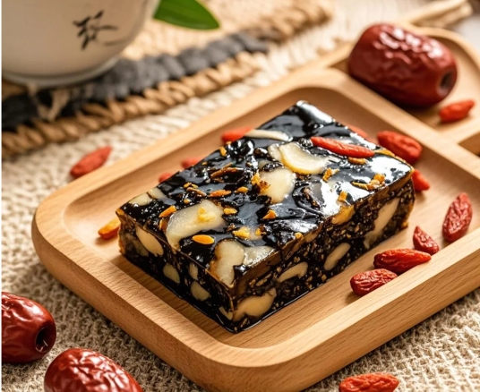 三:核查配料与资质。优质阿胶糕的配料表会清晰标注阿胶原料来源,配料干净,无多余防腐剂与不明添加剂,包装上印有正规生产资质与检测报告;假冒阿胶糕的配料表要么模糊不清,不标注阿胶来源,要么配料杂乱,麦芽糖浆、香精等成分排在前列,甚至无正规生产信息,此类产品需果断避开。