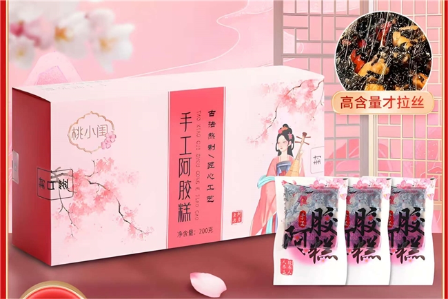 五、黛胶人阿胶糕:产品定位偏向于“内在调理外在美”,包装设计非常有女性化审美,走的是精致路线。它的阿胶糕切片通常比较薄,吃起来更方便,像零食一样,负担感小。